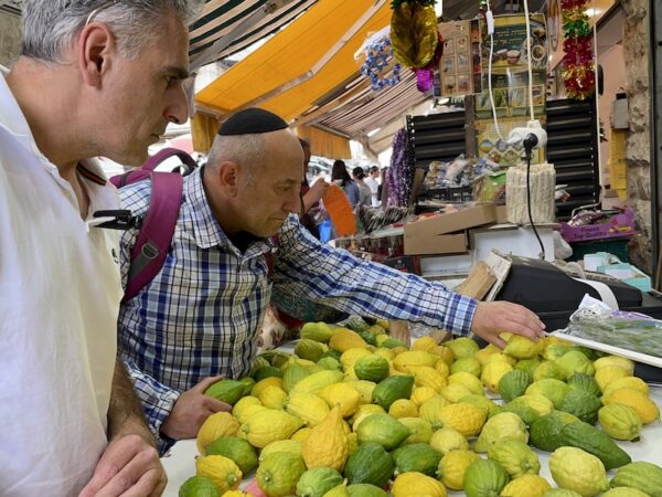 I går begyndte løvhyttefesten, og vi var forbi Ben Yehuda-markedet om eftermiddagen. Der var livlig aktivitet, fordi alle lige skulle have købt de sidste grøntsager, frugter, brød og blomster til de kommende festdage. Mange skulle også lige nå at købe deres ”lulav”, som er en buket af tre slags grønt (palmeblad, pil og myrte) og... Continue Reading →