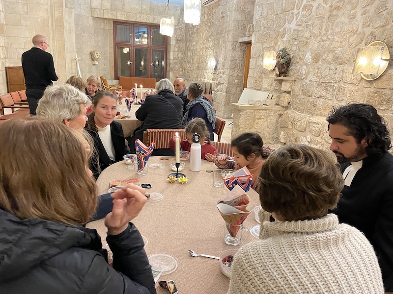 Til julegudstjenesten blev vi hele 22, som kunne fejre Jesu’ fødsel. Som kunne fejre, at Esajas’ profeti om Messias er gået i opfyldelse. Vi var seks danskere og en flok israelere, der enten er født her, har boet her længe elller er kommet inden for de seneste par år. Så ud over dansk og israelsk nationalitet, kunne vi “identificere” en nordmand, en svensker, en hollænder, to tyskere, tre russere og en uzbeker. Mange af disse har boet i Israel i mange år – og en del af dem havde ikke tidligere været til en gudstjeneste. Så vi er fyldte af glæde og taknemmelighed!