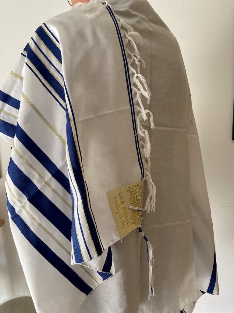 Et jødisk bedesjal, kendt som en Tallit, er et rituelt sjal med frynser (Tzitzit) i hjørnerne, som bæres af jødiske mænd til hverdagens morgengudstjeneste, på sabbat og helligdage. Det er traditionelt lavet af uld og bruges til at dække hovedet under bøn. Det er fascinerende at se, hvordan bedesjalet pakkes ud ved gudstjenestens begyndelse, tages på og med en bestemt bevægelse slænges op over begge skuldre, så armene er fri.